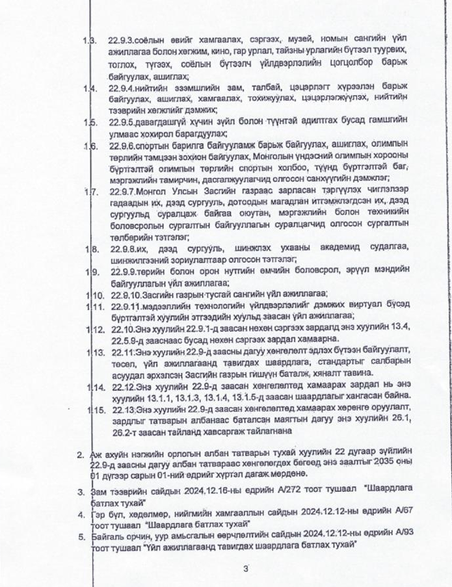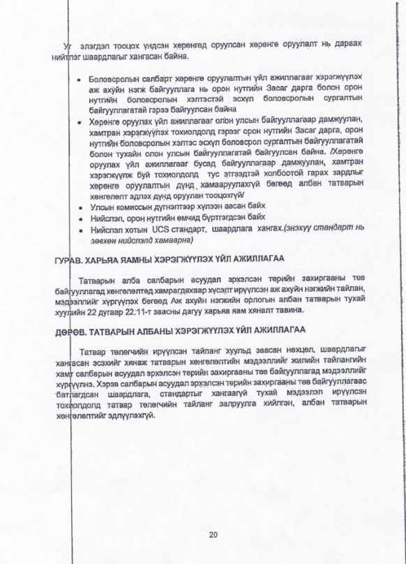 ХӨДӨЛМӨРИЙН ЧАДВАР АЛДСАНЫ ТЭТГЭВРИЙГ ЦАХИМААР ТОГТООХ ҮЙЛЧИЛГЭЭГ НЭВТРҮҮЛЛЭЭ Нийгмийн да... 2025-10-15 314ТӨРИЙН ЖИНХЭНЭ АЛБАН ХААГЧИЙГ ШИЛЖҮҮЛЭХ, СЭЛГЭН АЖИЛЛУУЛАХ ТУХАЙ ЗАР