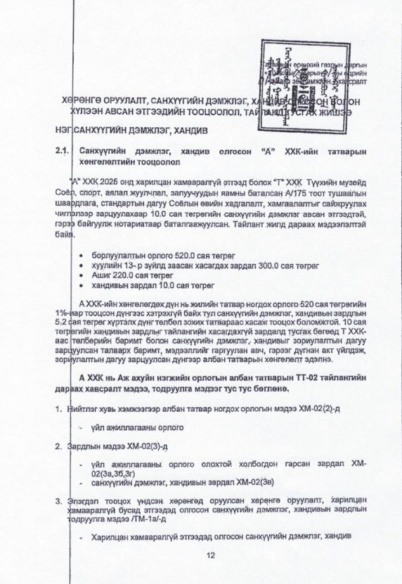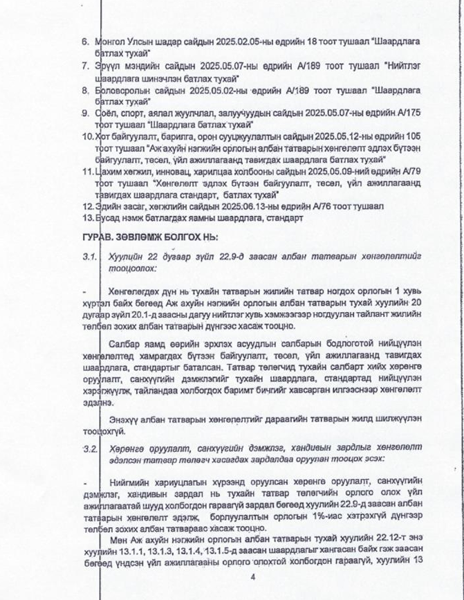 -Монголын татварын алба татварын хууль тогтоомж хэрэгжүүлэх зөвлөмж ... 2025-10-01 384ДОЛОО ХОНОГИЙН ҮЙЛ АЖИЛЛАГАА