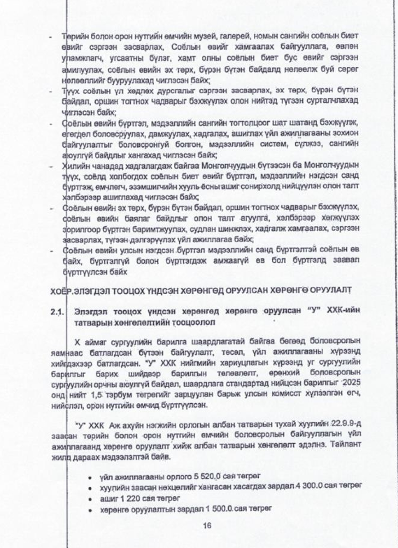 Төрийн албаны зөвлөлийн 2023 оны 25 дугаар тогтоолоор батлагдсан Төрийн албаны шалгалт өгөх болзол... 2024-06-24 17652Хөгжлийн бэрхшээлтэй иргэнийг орон сууцаар хангахад дэмжлэг үзүүлэх хөтөлбөр