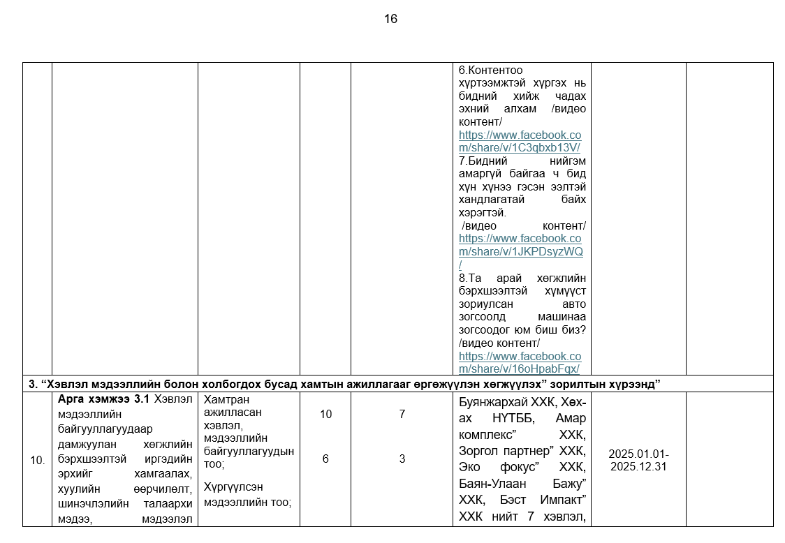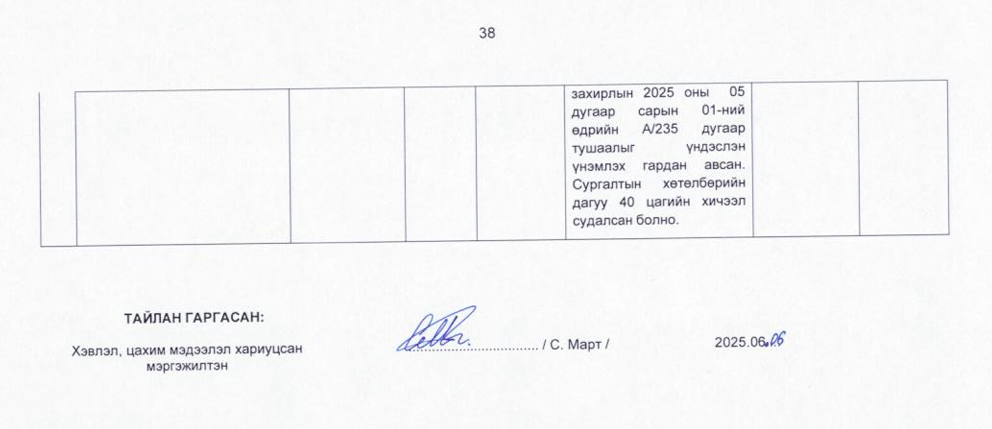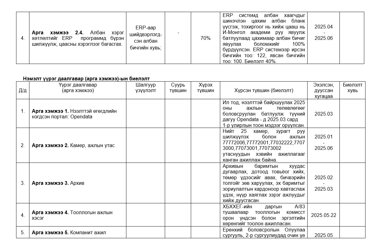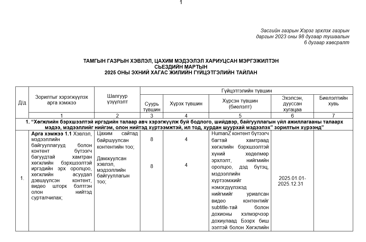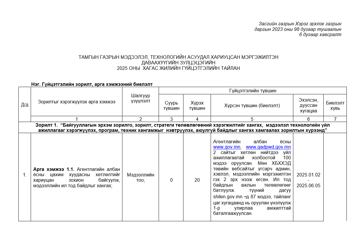 Төрийн жинхэнэ албан хаагчийн ажлын гүйцэтгэлийн тайлан-2025он /Хөгжил, нийгмийн оролцооны газар/