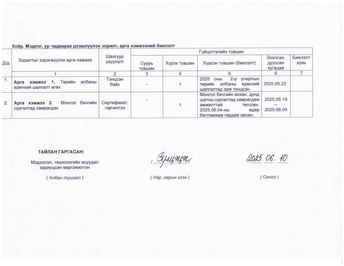 6. МЭДЭЭЛЭЛ, ТЕХНОЛОГИЙН АСУУДАЛ ХАРИУЦСАН МЭРГЭЖИЛТЭН