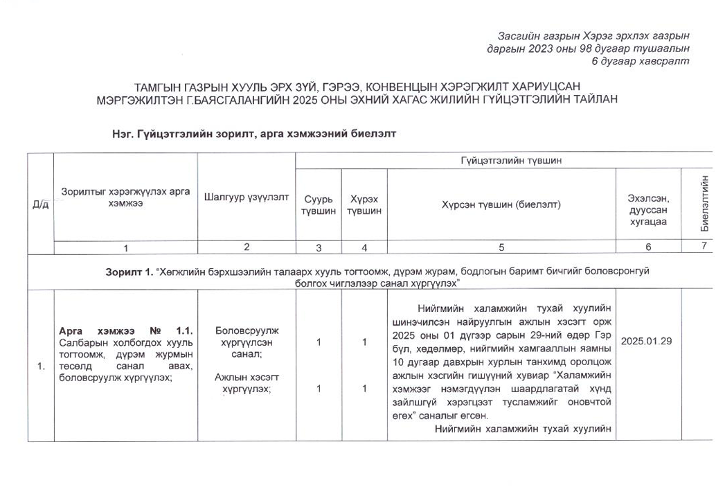 Төрийн жинхэнэ албан хаагчийн ажлын гүйцэтгэлийн тайлан-2025он /Тамгын газар/