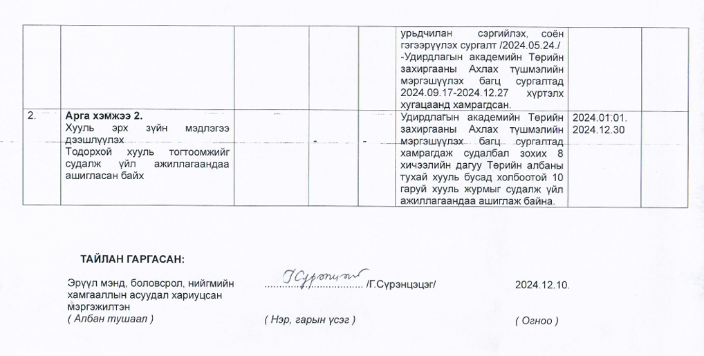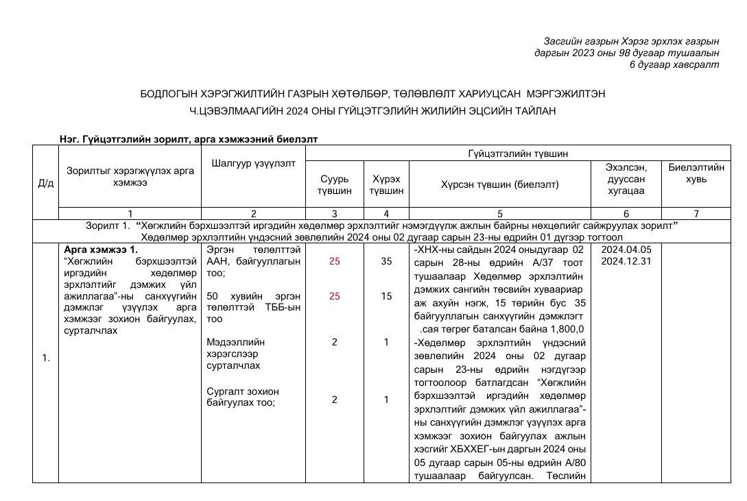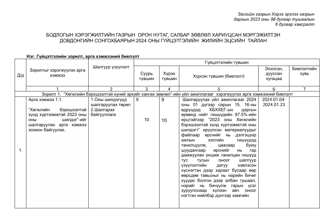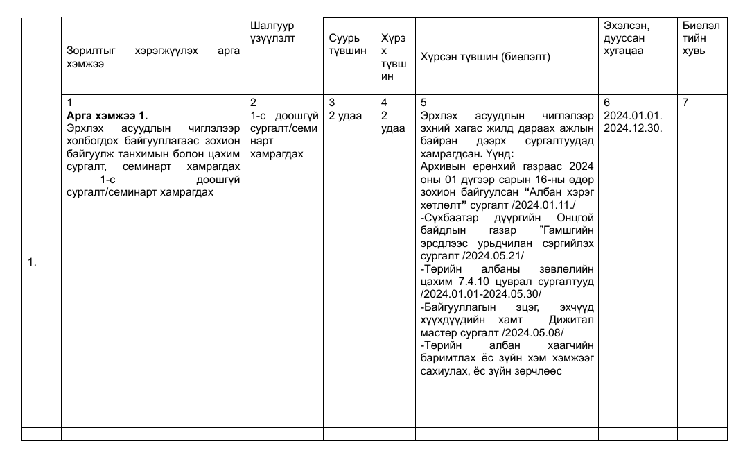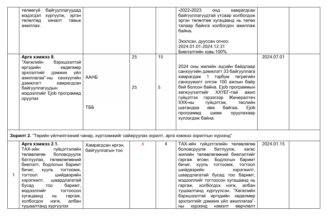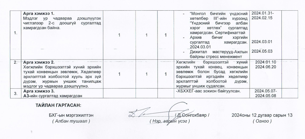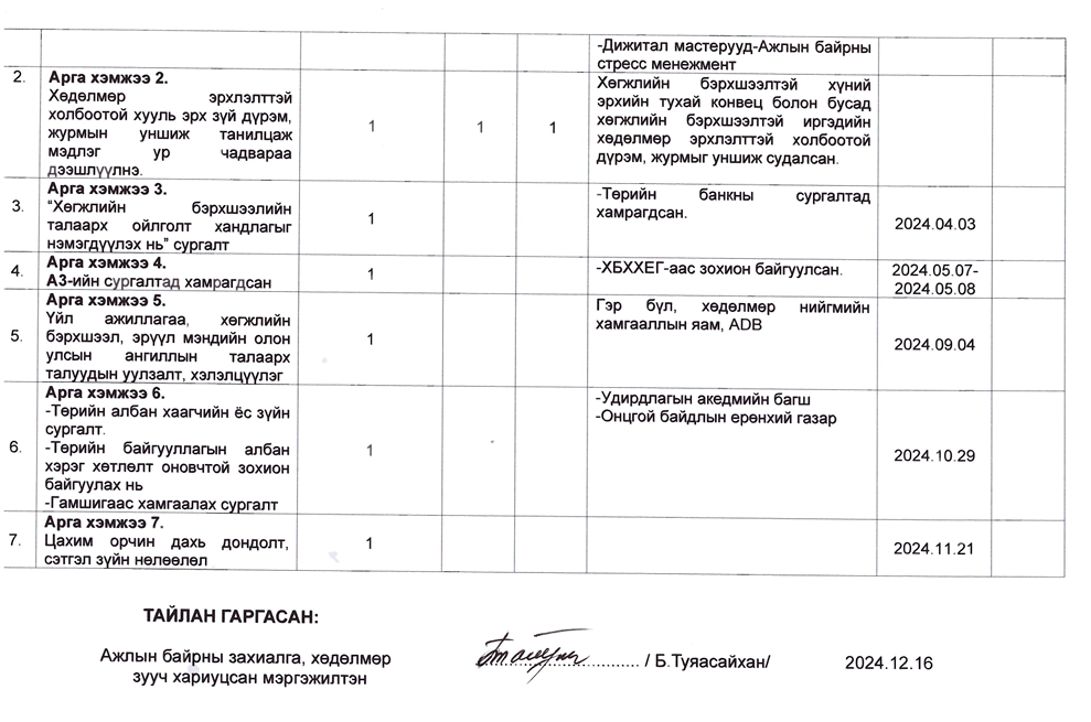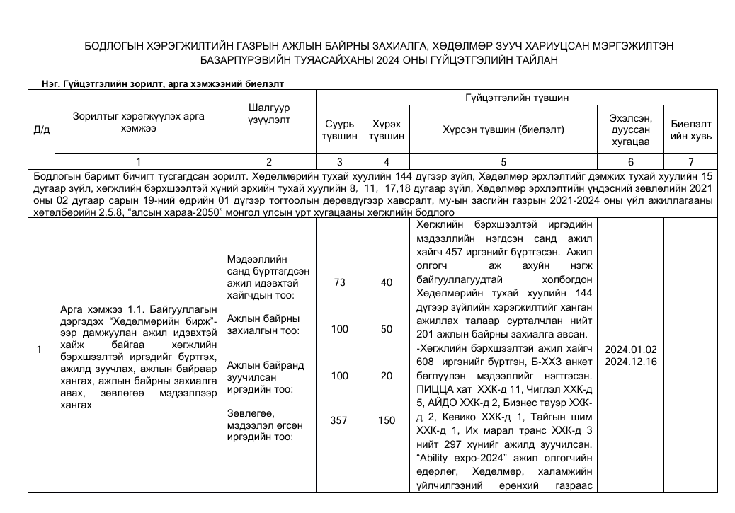 Төрийн жинхэнэ албан хаагчийн ажлын гүйцэтгэлийн тайлан-2024он /Бодлогын хэрэгжилтийн газар/
