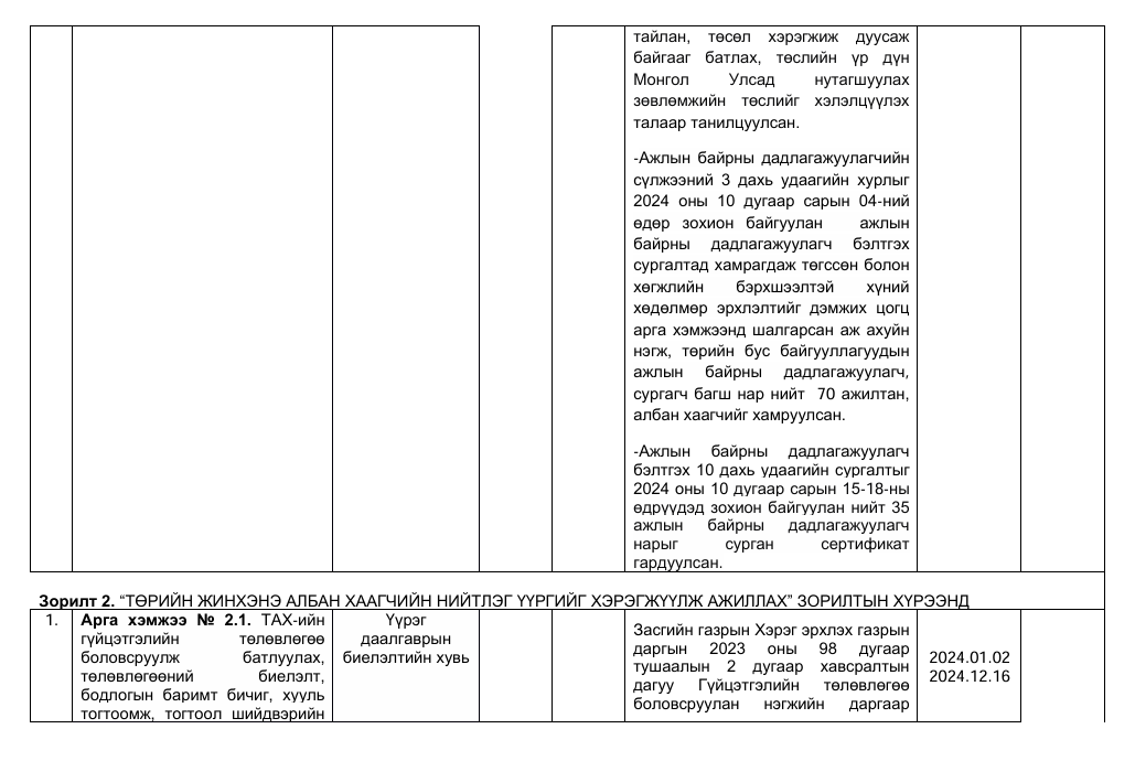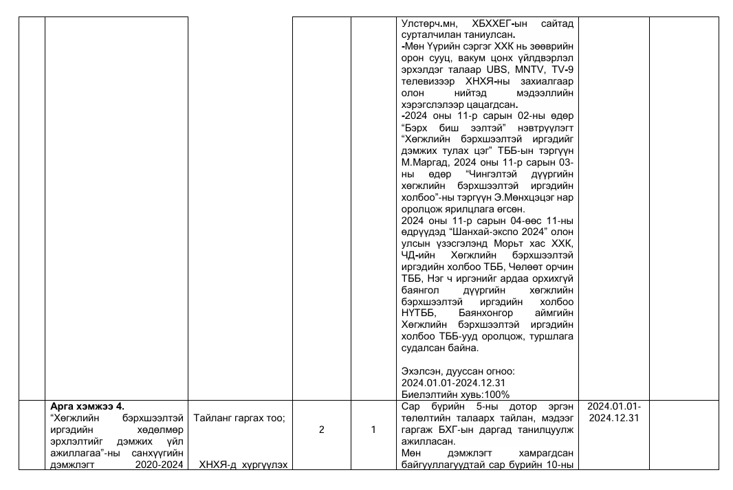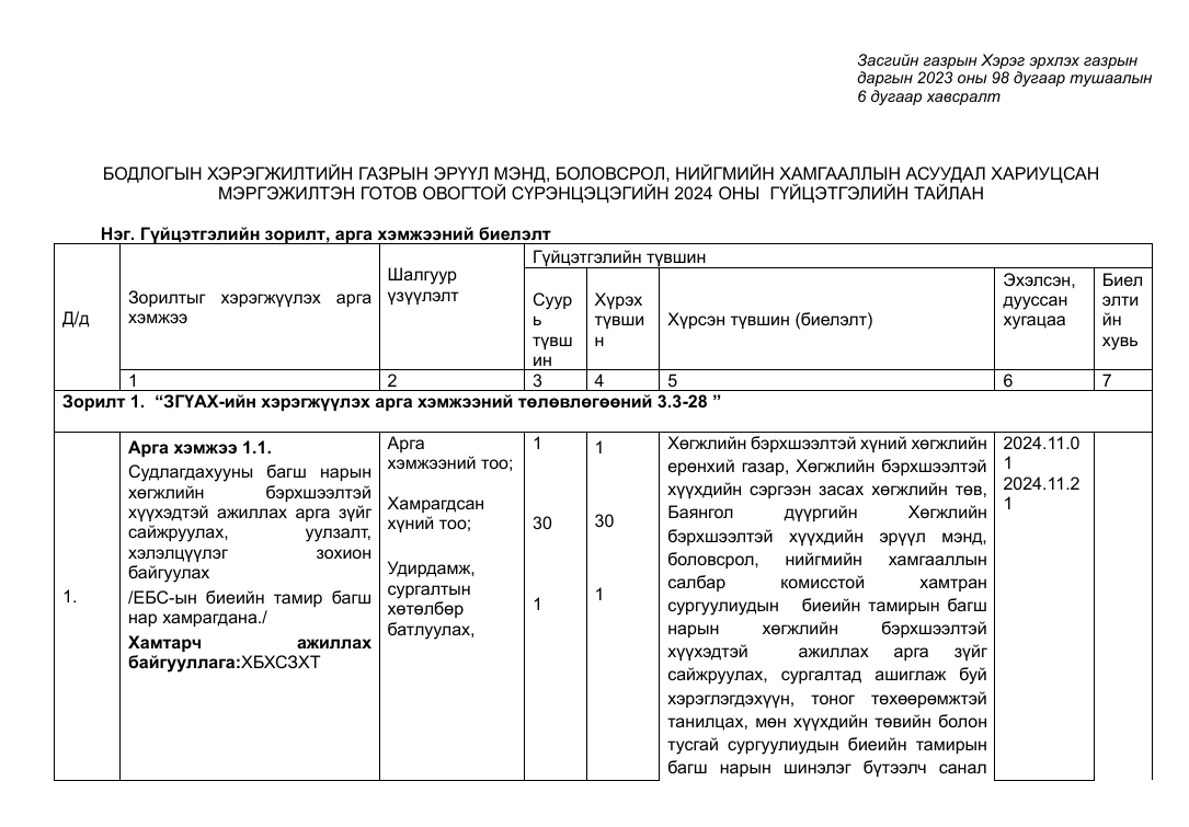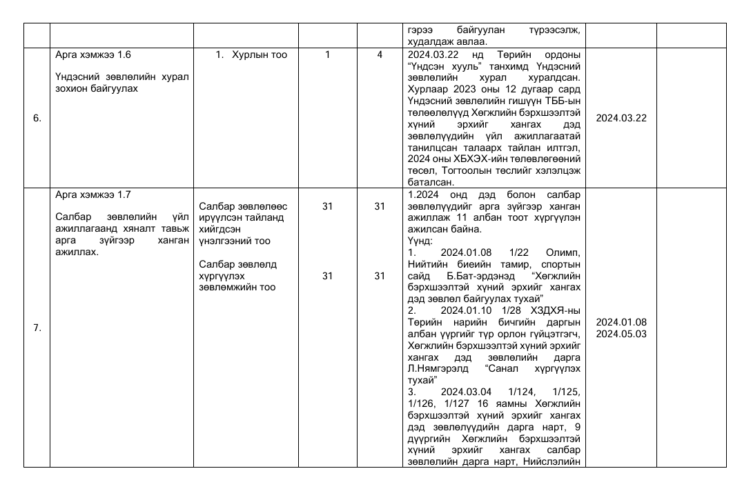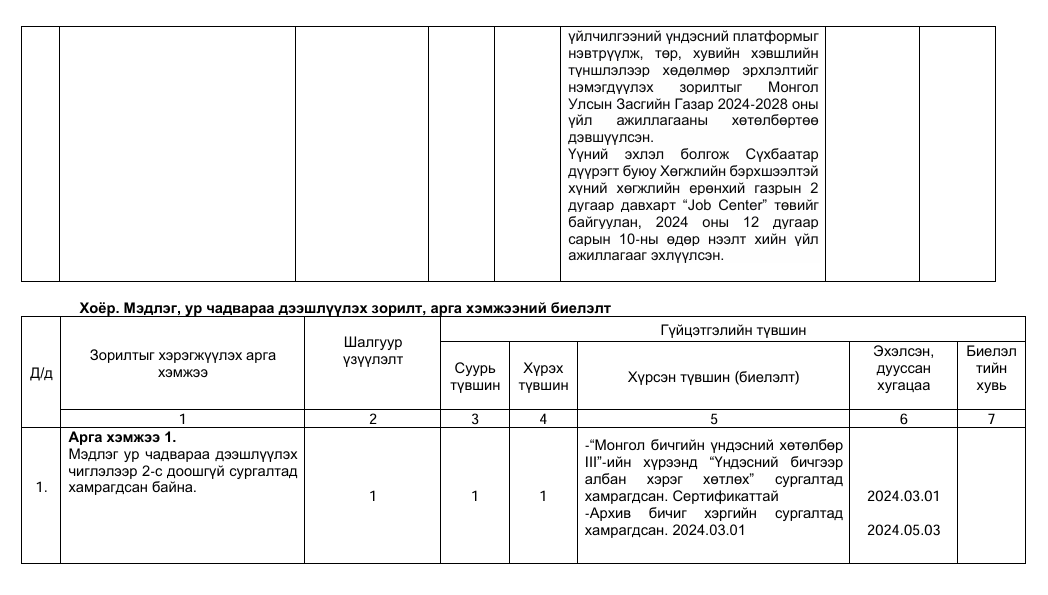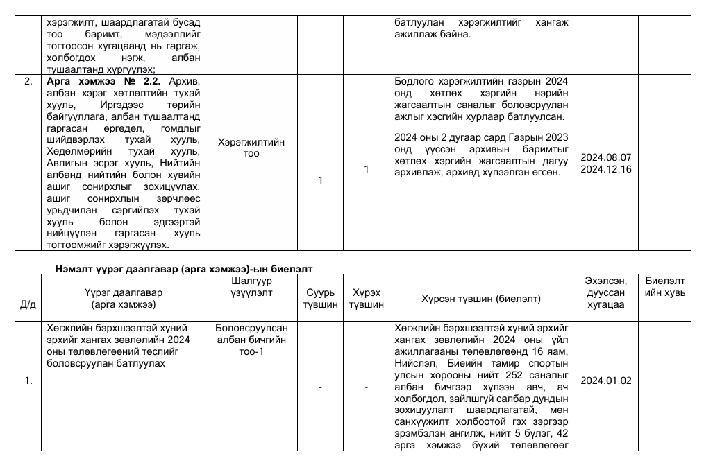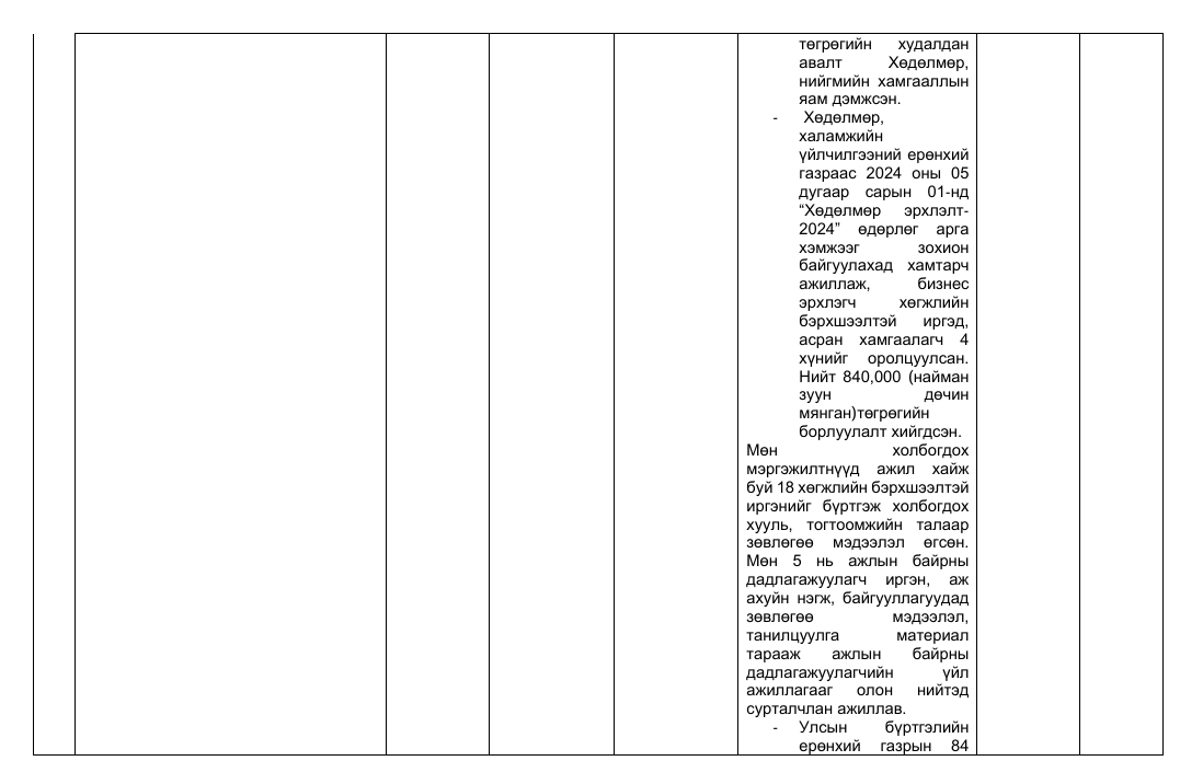 Төрийн жинхэнэ албан хаагчийн ажлын гүйцэтгэлийн тайлан-2024он /Бодлогын хэрэгжилтийн газар/