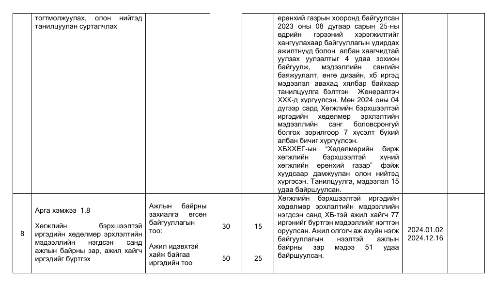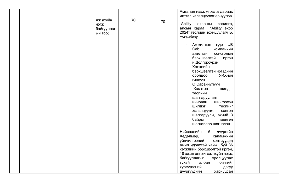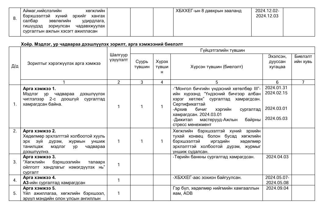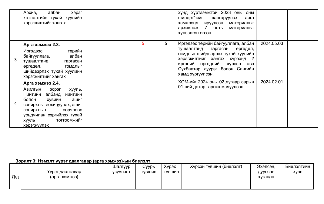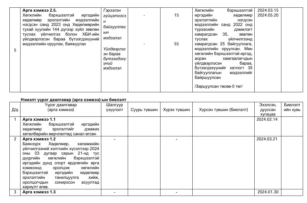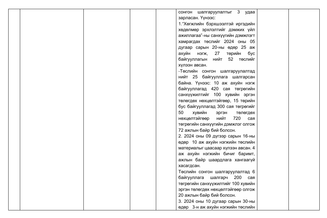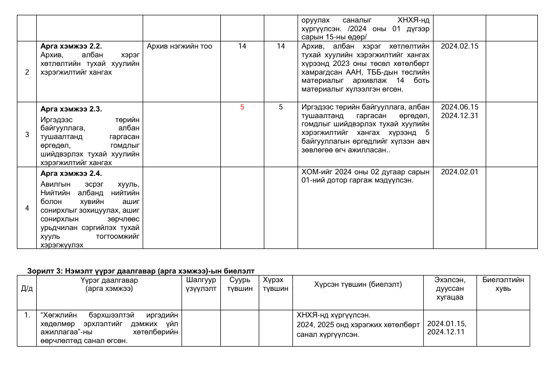 Төрийн жинхэнэ албан хаагчийн ажлын гүйцэтгэлийн тайлан-2024он /Бодлогын хэрэгжилтийн газар/
