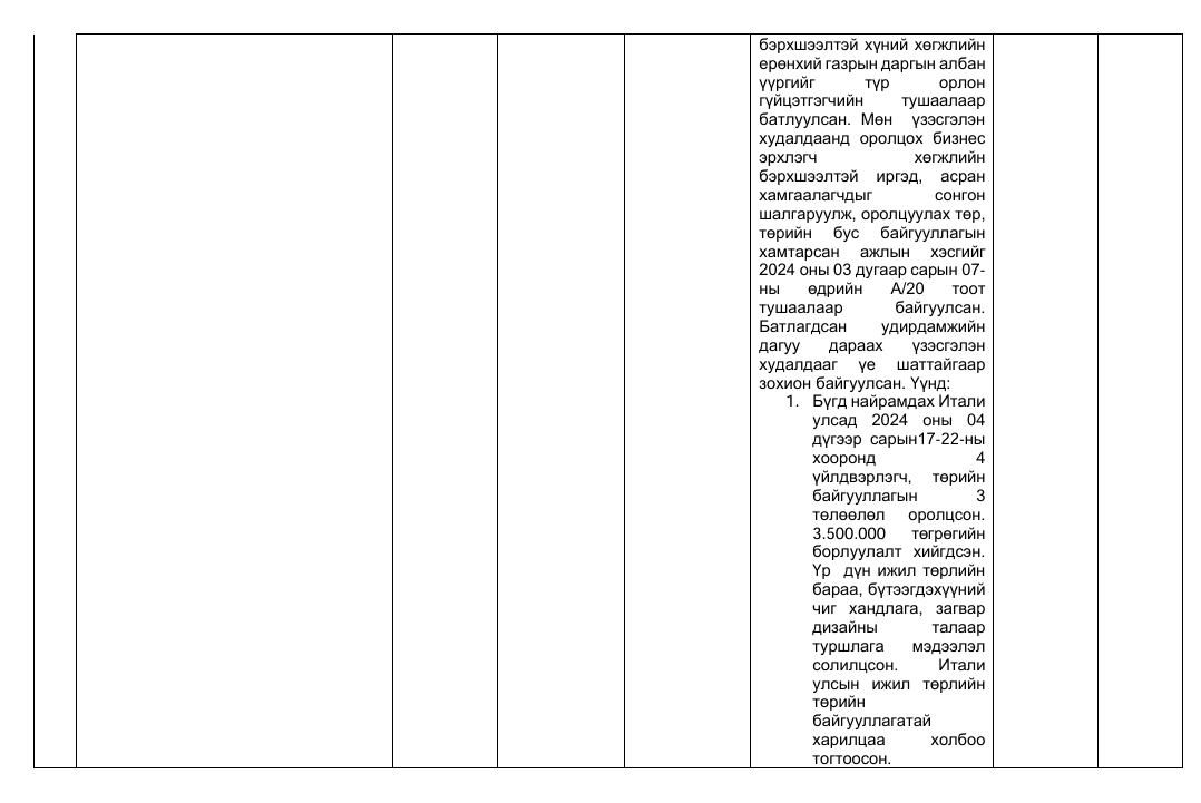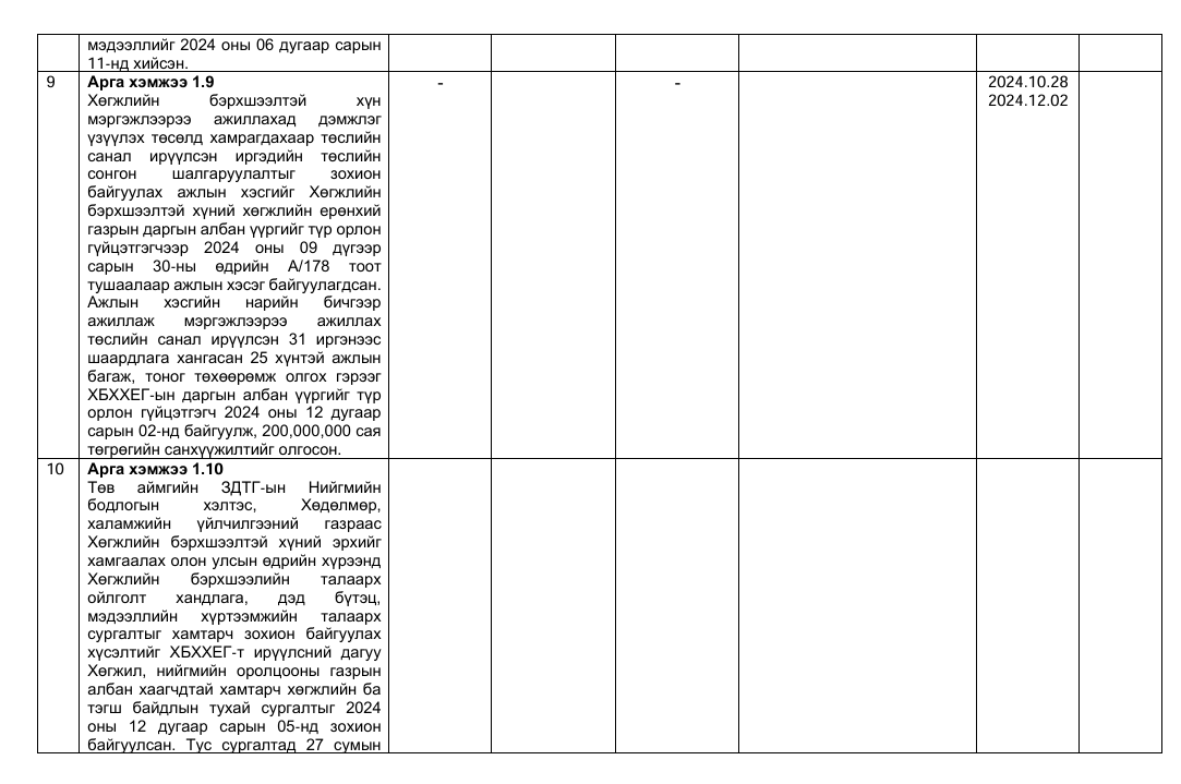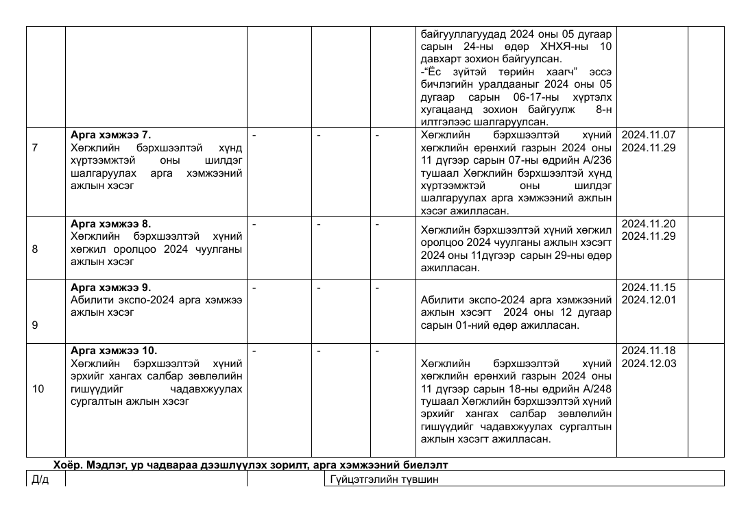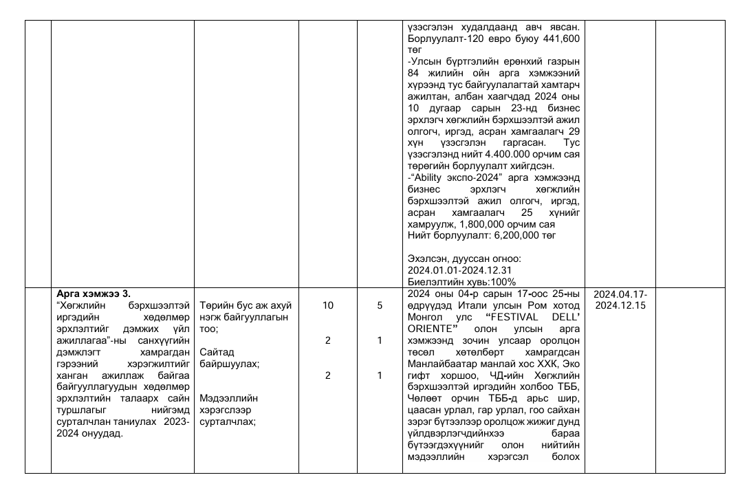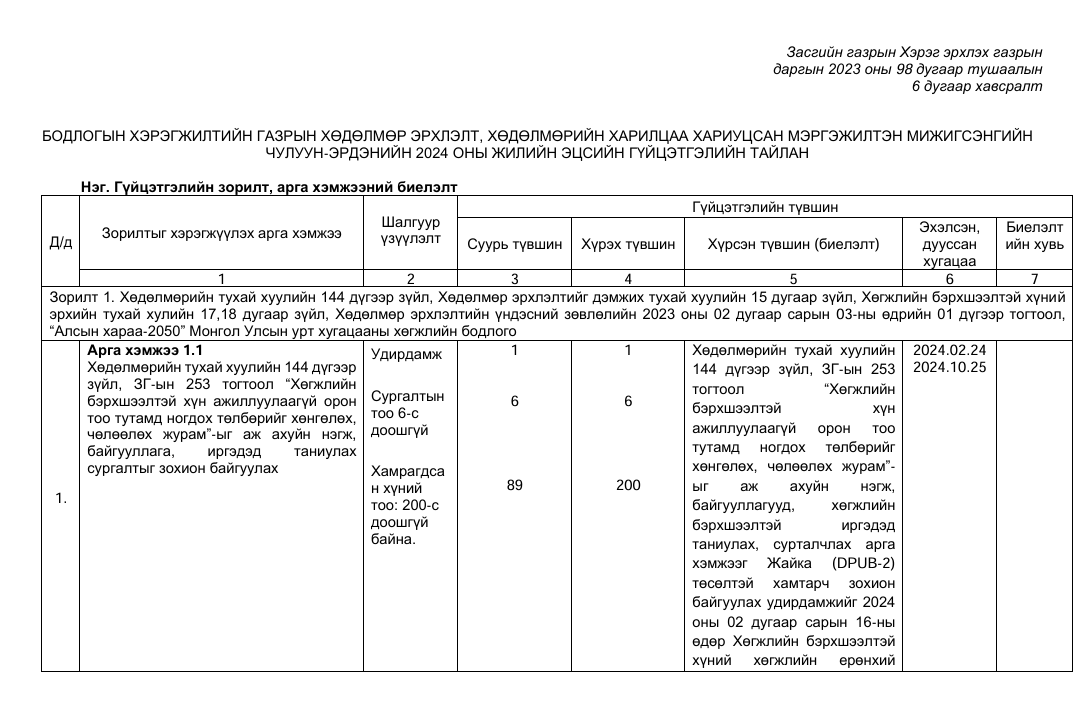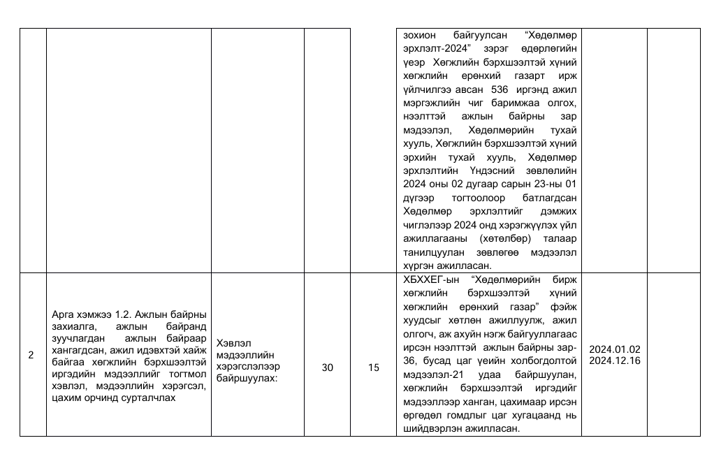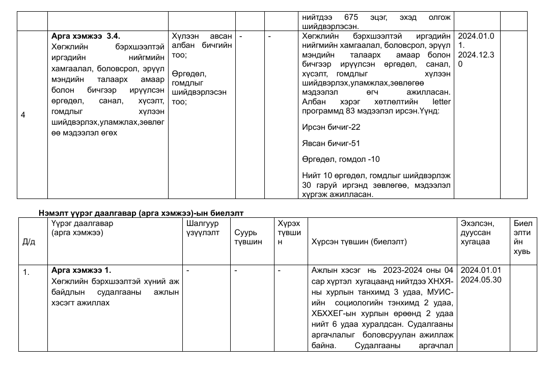 Төрийн жинхэнэ албан хаагчийн ажлын гүйцэтгэлийн тайлан-2024он /Бодлогын хэрэгжилтийн газар/