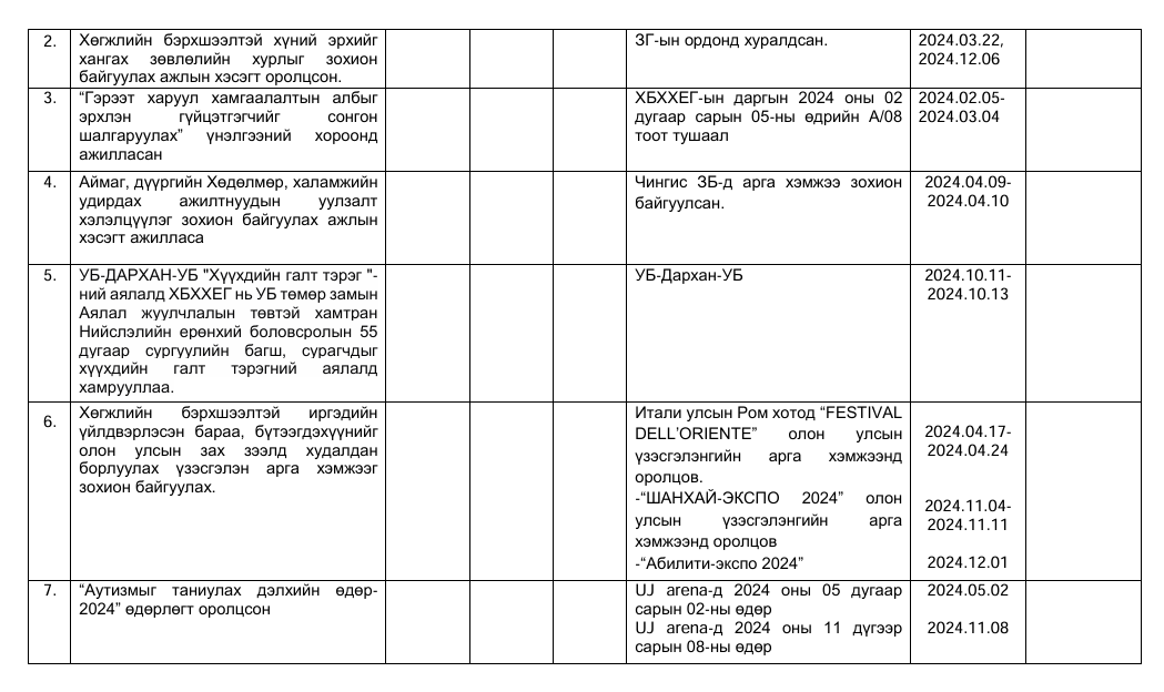 1. Орон нутаг, салбар зөвлөл хариуцсан мэргэжилтэн
