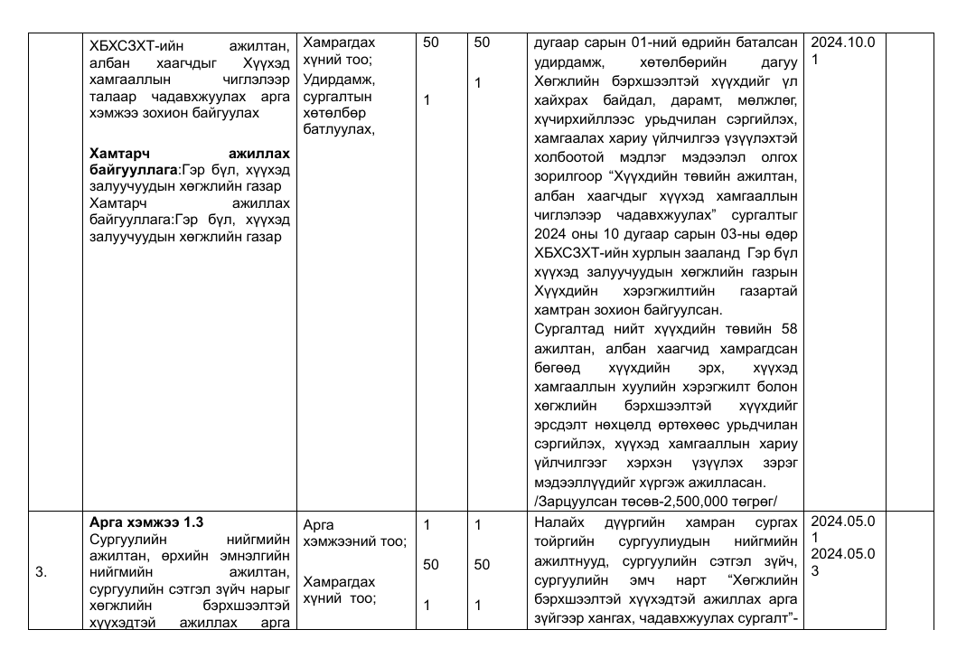 3. Ажлын байрны захиалга, хөдөлмөр зууч хариуцсан мэргэжилтэн