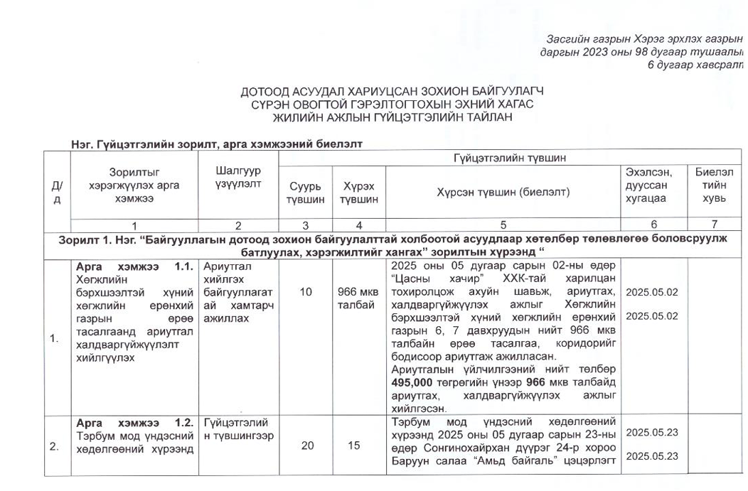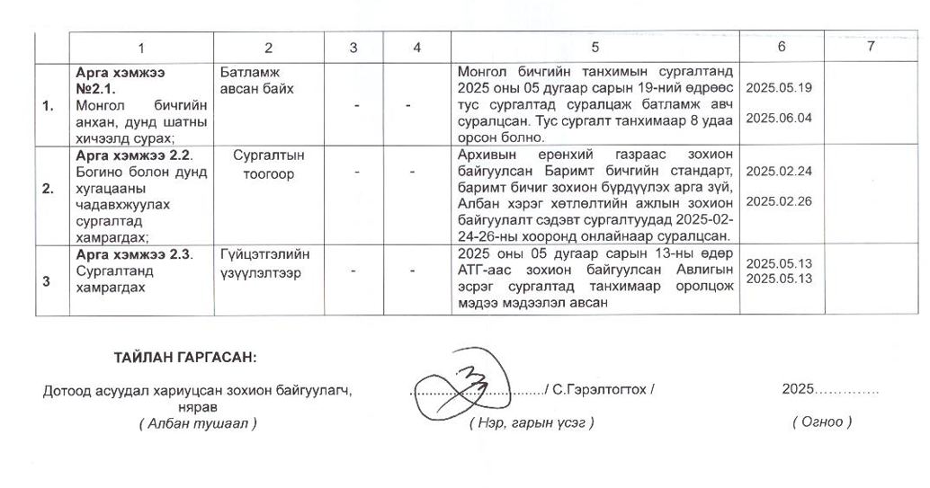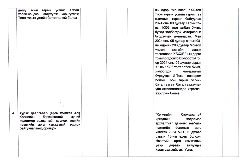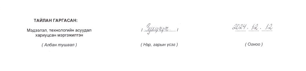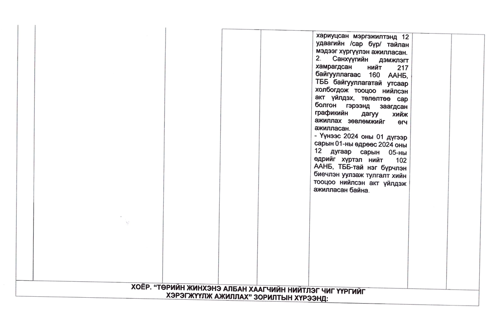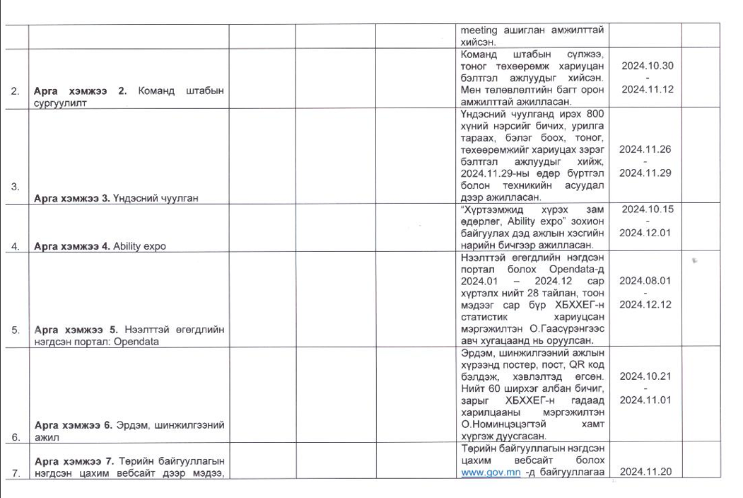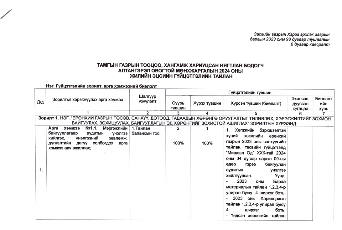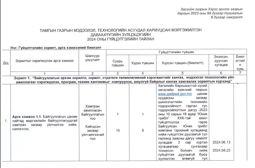 Төрийн жинхэнэ албан хаагчийн ажлын гүйцэтгэлийн тайлан-2024он /Тамгын газар/
